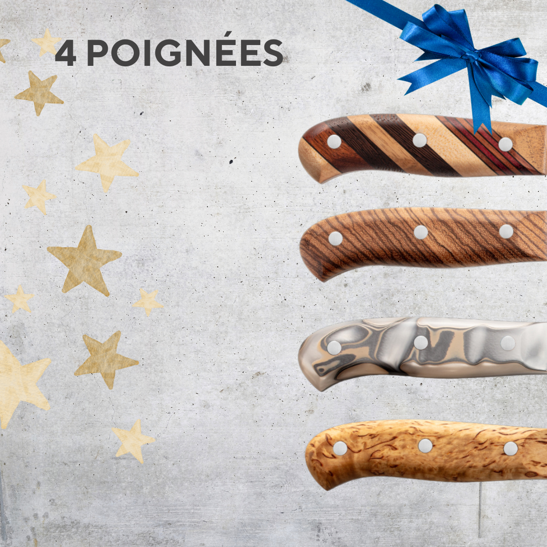 Disponible avec quatre variantes de manche exceptionnelles et une impressionnante gravure laser TYPEMYKNIFE®.