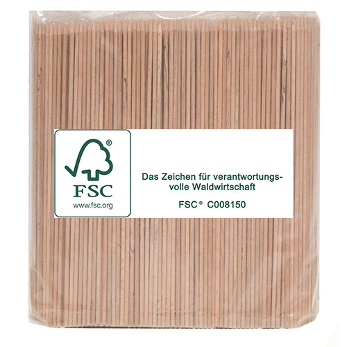 Brochettes en hêtre FSC® de qualité à une pointe. Une finition impeccable pour plus d’efficacité en production. Les brochettes sont 100% certifiées FSC® et proviennent d’un environnement écologique et social responsable et d’une gestion de la forêt équitable.